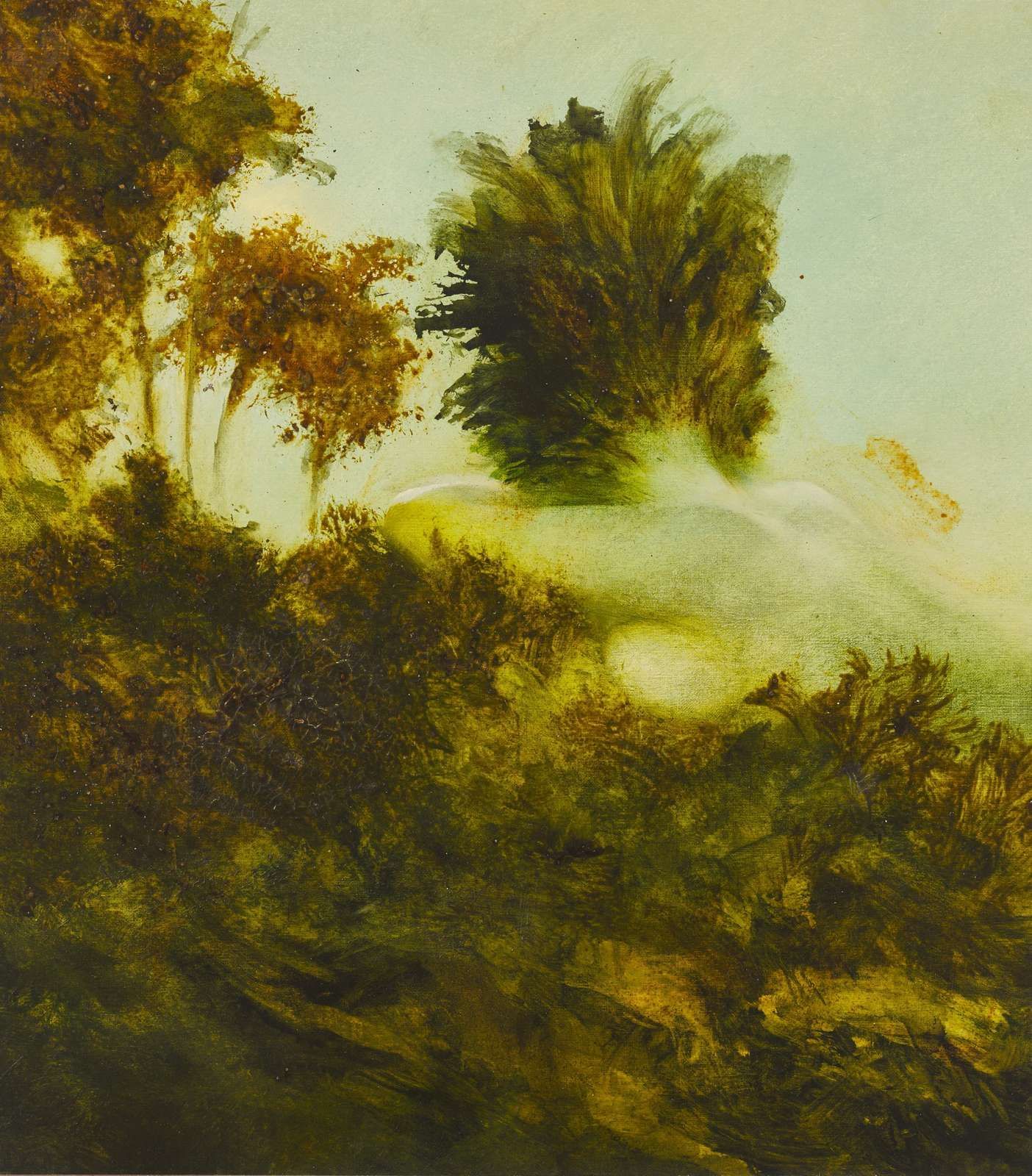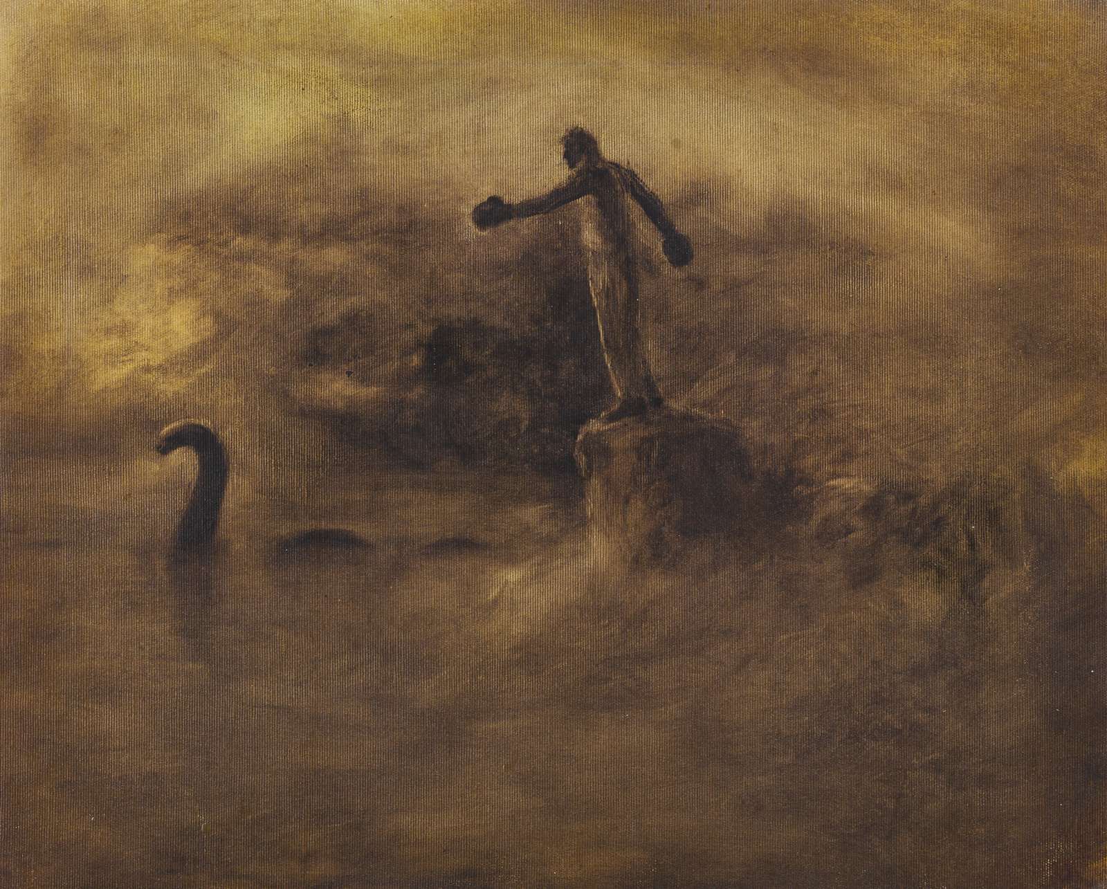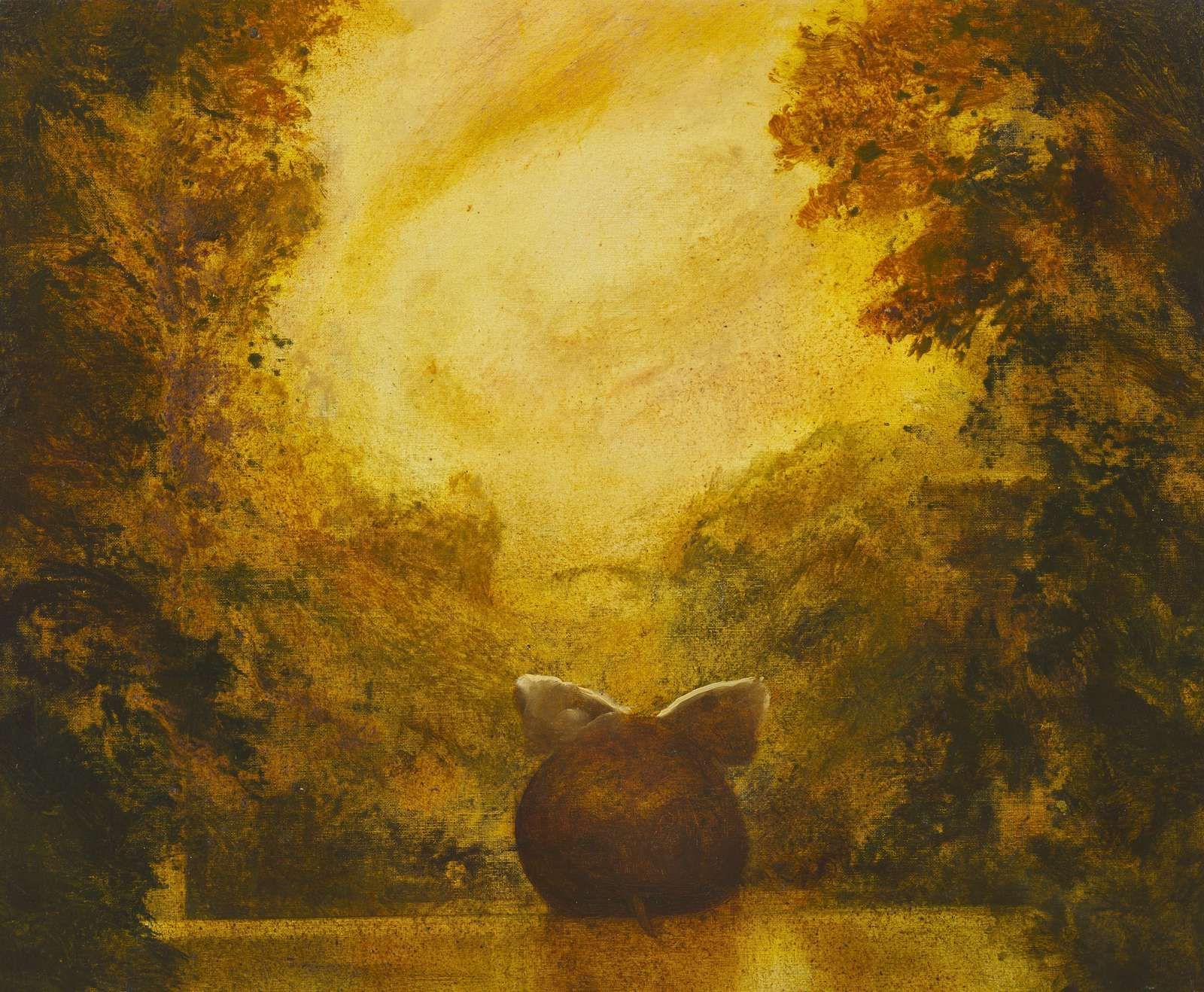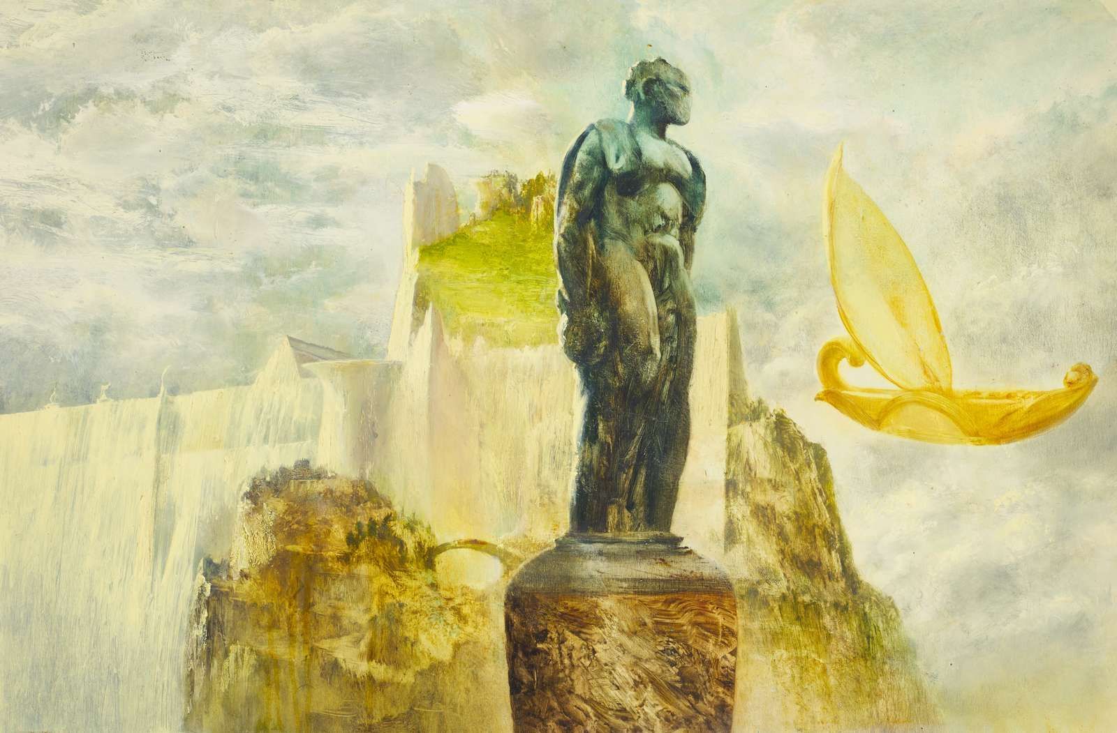 Nel tempo, le sue scene si animano e appaiono personaggi da favola. L’incubo esistenziale si è tramutato in paesaggi sereni e idilliaci, in conversation pieces che hanno per attori principali gli improbabili abitanti di un mondo alla Tolkien. I colori si fanno più chiari e luminosi. Il magma primordiale, quasi infernale, viene sconfitto dall’illusione, dal sogno, dalla speranza, dal mito arcadico. L’ironia domina. Un sorriso benevolo, anche se consapevole della finzione, si stende su azioni e personaggi.