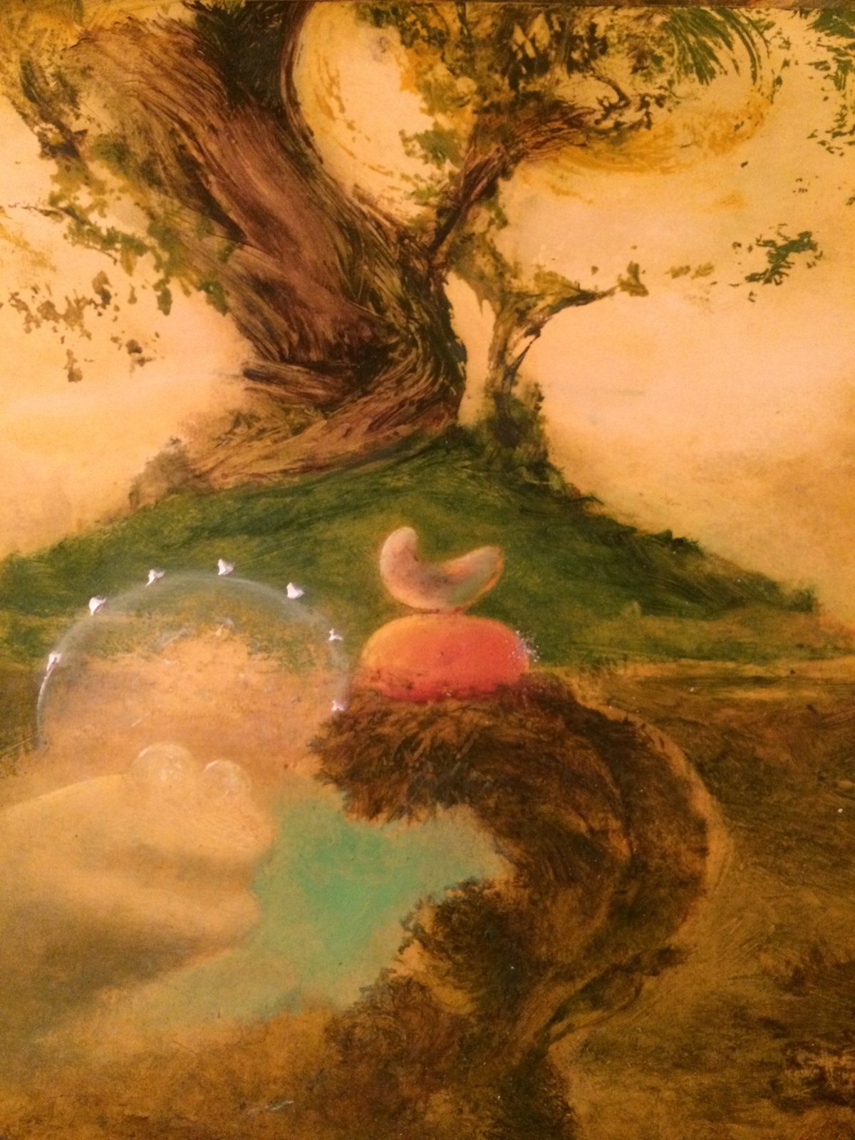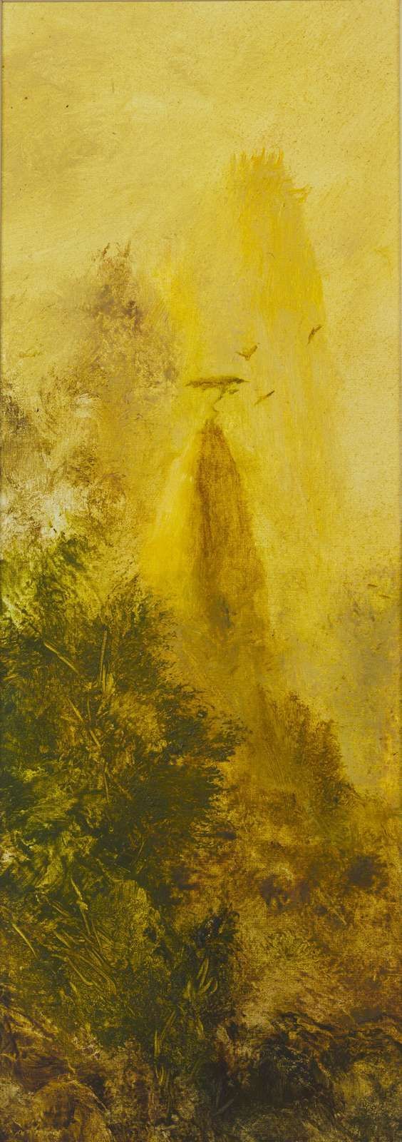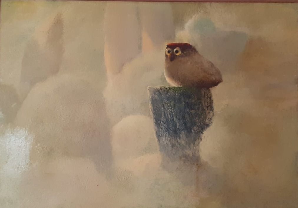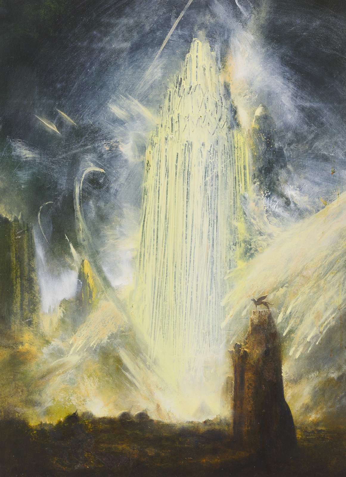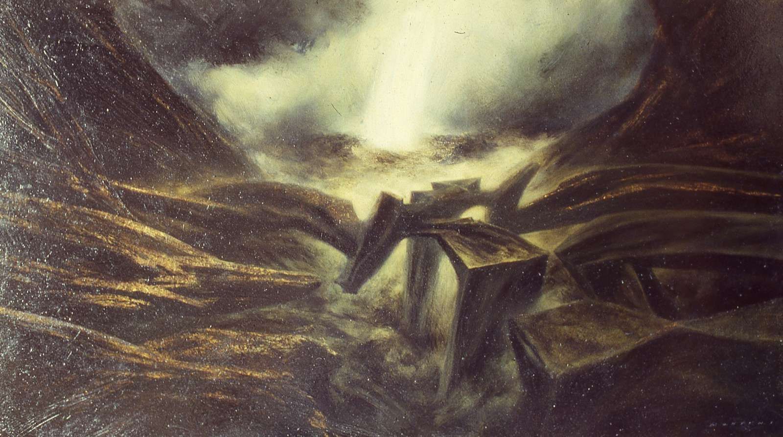 Nel tempo, le sue scene si animano e appaiono personaggi da favola. L’incubo esistenziale si è tramutato in paesaggi sereni e idilliaci, in conversation pieces che hanno per attori principali gli improbabili abitanti di un mondo alla Tolkien. I colori si fanno più chiari e luminosi. Il magma primordiale, quasi infernale, viene sconfitto dall’illusione, dal sogno, dalla speranza, dal mito arcadico. L’ironia domina. Un sorriso benevolo, anche se consapevole della finzione, si stende su azioni e personaggi.