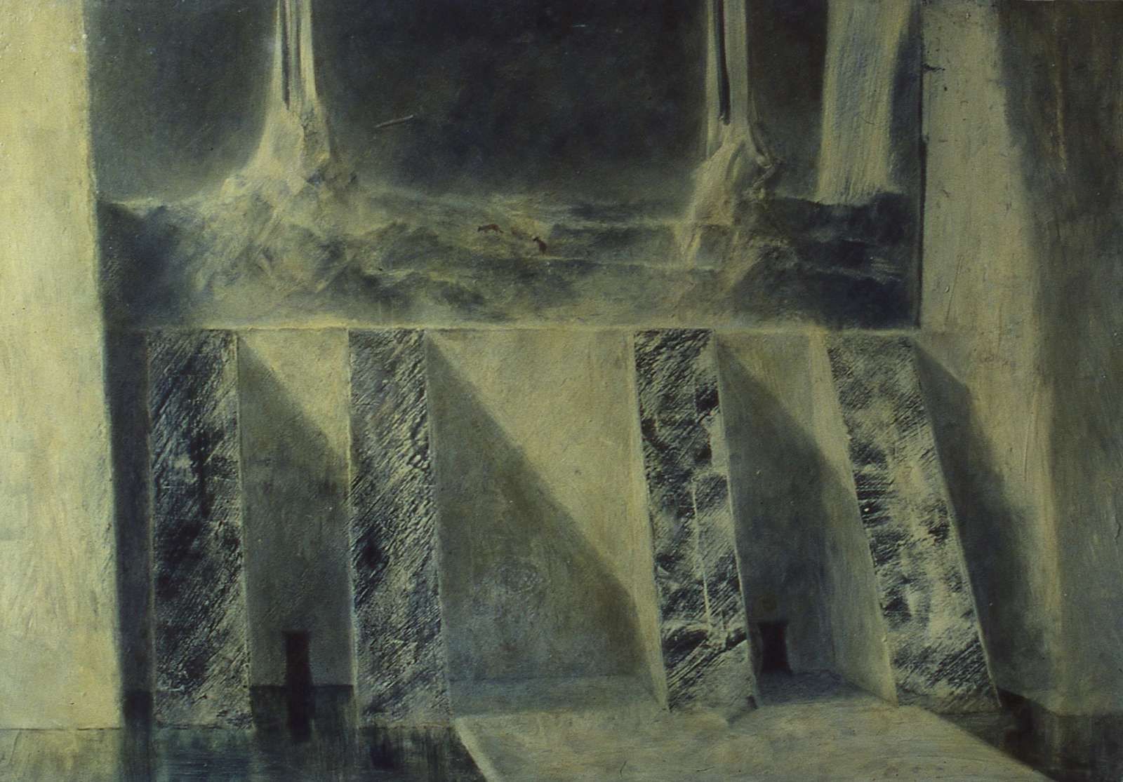 Nei primi quadri di Montini la figura umana è quasi sempre assente. A dominare sono immense forze naturali, animali terribili e costruzioni colossali senza tempo. Cieli da incubo, tempeste, acque oceaniche in subbuglio convivono nei suoi quadri con paesaggi misteriosi squarciati da tagli di luce di ignota provenienza.