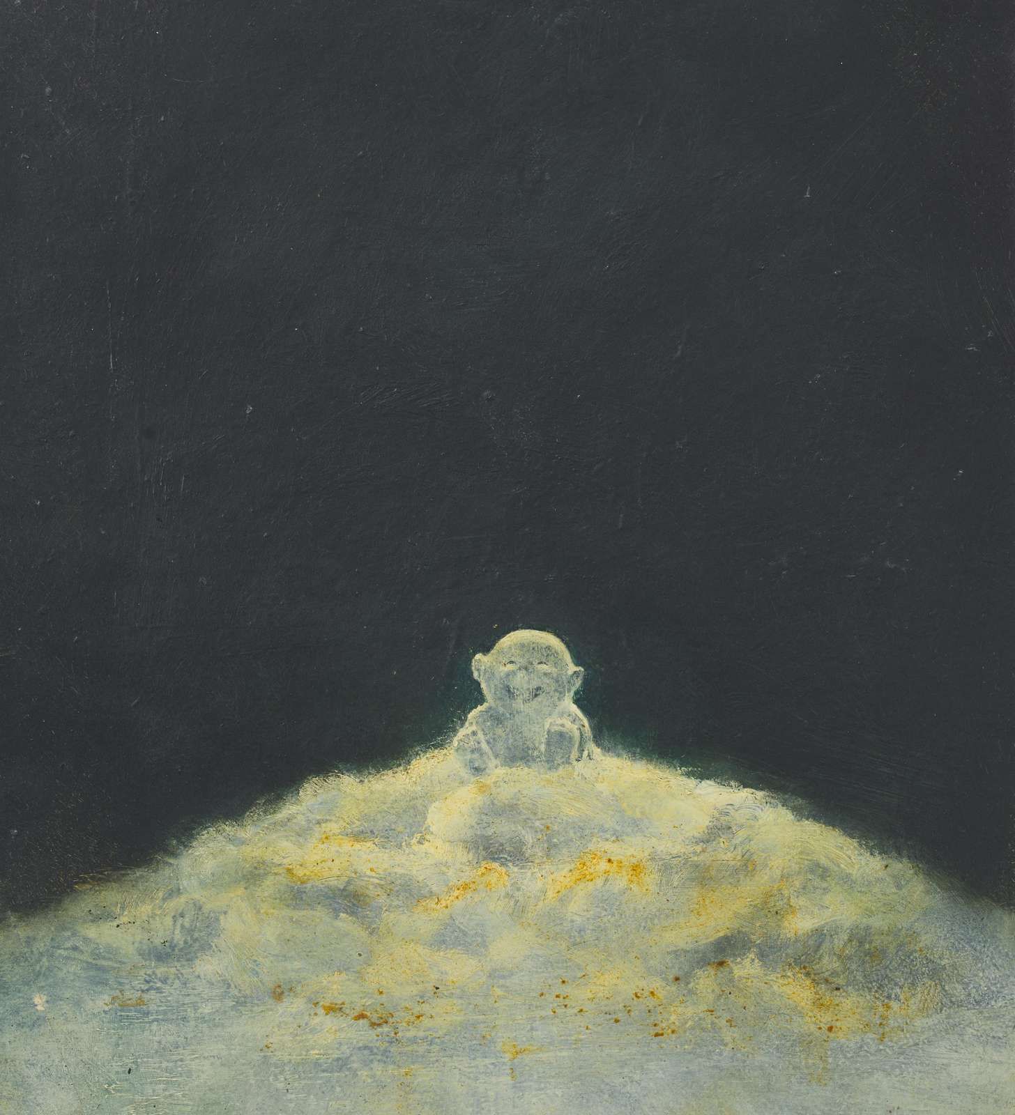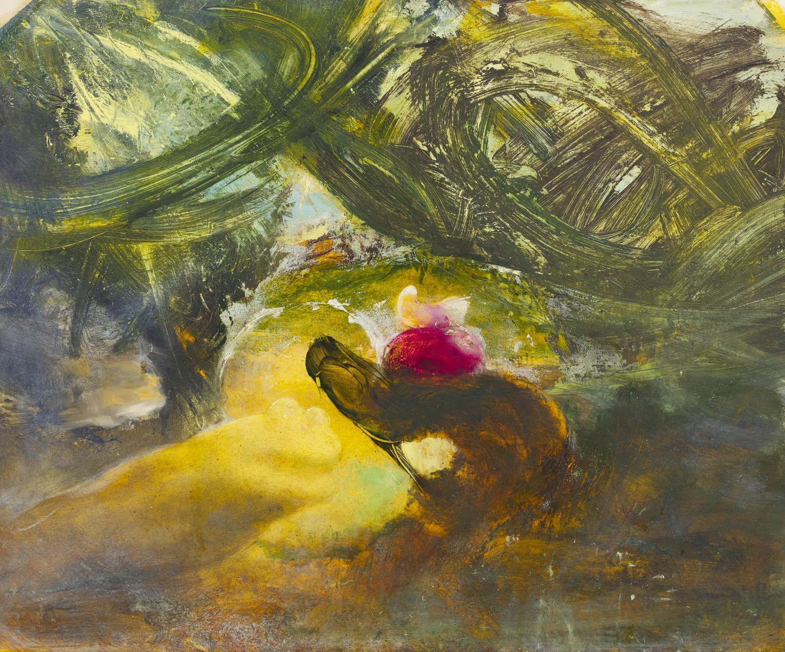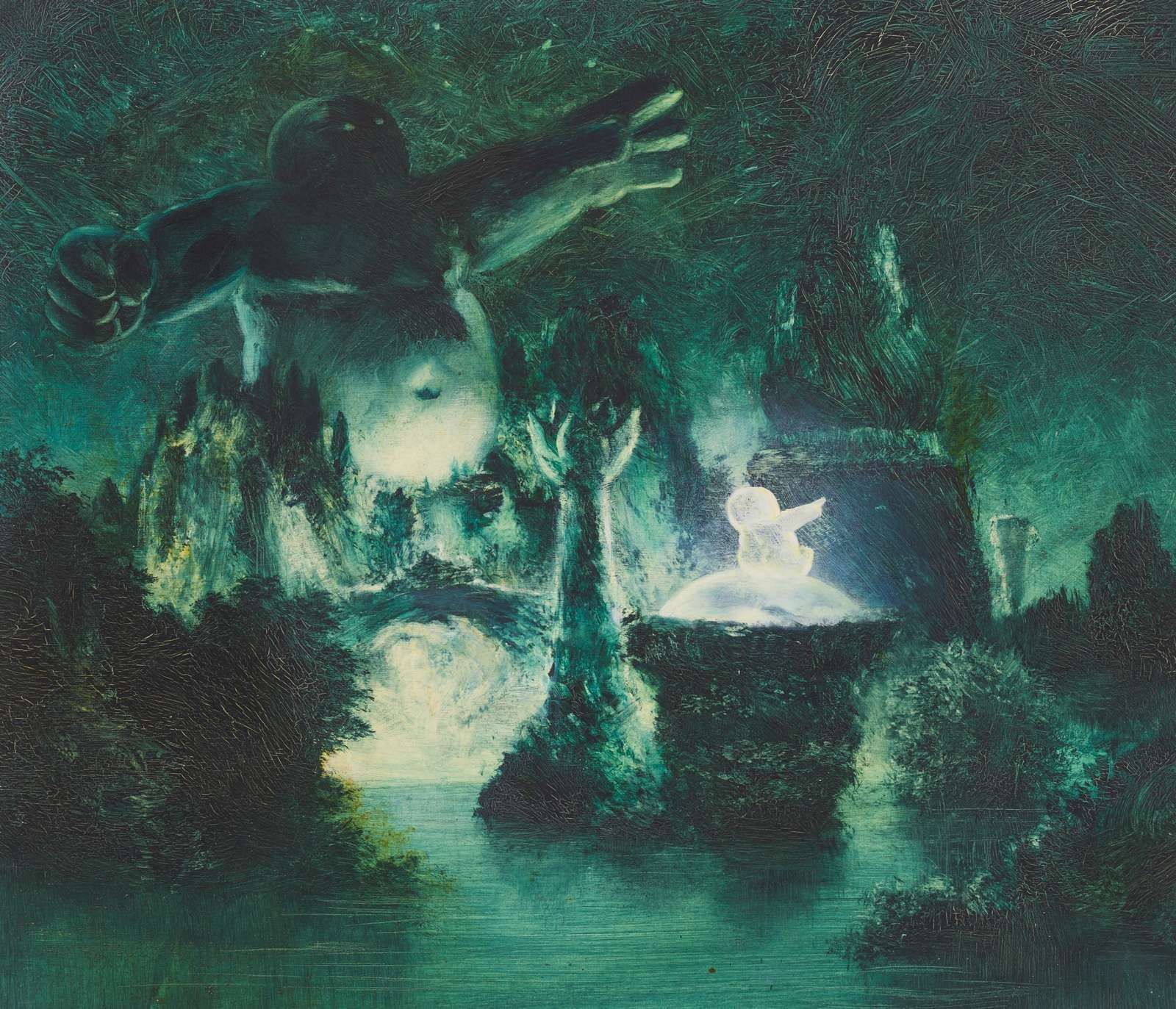 Forse, questo lavoro segreto ha avuto bisogno proprio di quello che gli si rimproverava: di star lontano dal mondo e dalle sue accidentalità, di vivere in uno stato di autosegregazione, di dipingere solo in stato di necessità, di coltivare un mondo immaginifico difficile da condividere e tanto più da spiegare. Il tutto, però, con le mille informazioni e suggestioni che potevano venirgli dal mondo dell’arte antica come dalla fiaba, dalla musica, dal cinema, dall’illustrazione più avvertita, dai cartoon, dalla debole luce di un piccolo apparecchio televisivo accolto sotto le lenzuola.