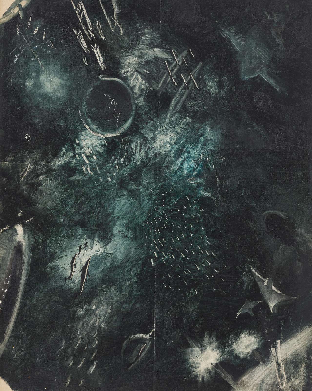 Toujours en remenant la plume, usò la penna, l’inchiostro, le “clecsografe”, le mascherine ritagliate per creare immagini ultime, apocalittiche, di un’intensità e modernità sconcertanti.